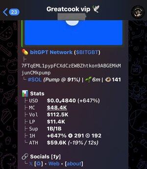 Greatcook// Degen trader//in collaborazione con sviluppatori e sviluppatori//#Solana #memecoin//Effettuando 10-100 chiamate giornaliere su TG