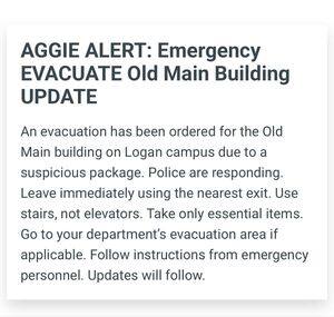 Een gebouw aan de Utah State University wordt geëvacueerd vanwege een verdachte pakket.