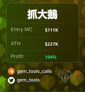 🎲 Наш бот покликав: $Catch гусак! 📊 MC: $111.4K ➜ $227.9K 📜 CA: 0x771c7a042c93a4bb628a0fc138202b9e5b174444 Приєднуйтесь до нас 👉