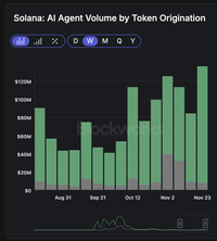 🚨 Solana 在代币化股票交易量和 AI 代理交易量上都达到了历史新高。
