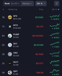 🚨 SPX6900 ( $SPX) 在市值前100名的加密貨幣中,24小時內的漲幅最高。